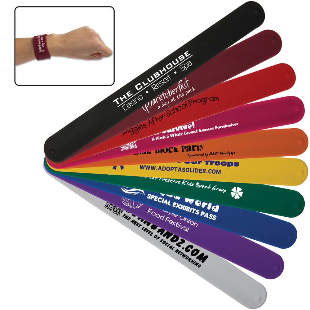 If you’re looking for a fun and budget friendly giveaway, try the Silicone Slap Bracelets! Let your next marketing campaign show your "slapstick" side with these customized fun bracelets! They are great for any kids' event, Company Picnics, Pink Awareness, Back to School, Sporting Events, Fund Raisers, or for using as giveaways and SWAG.
