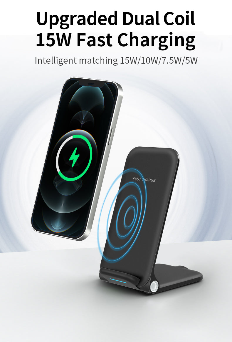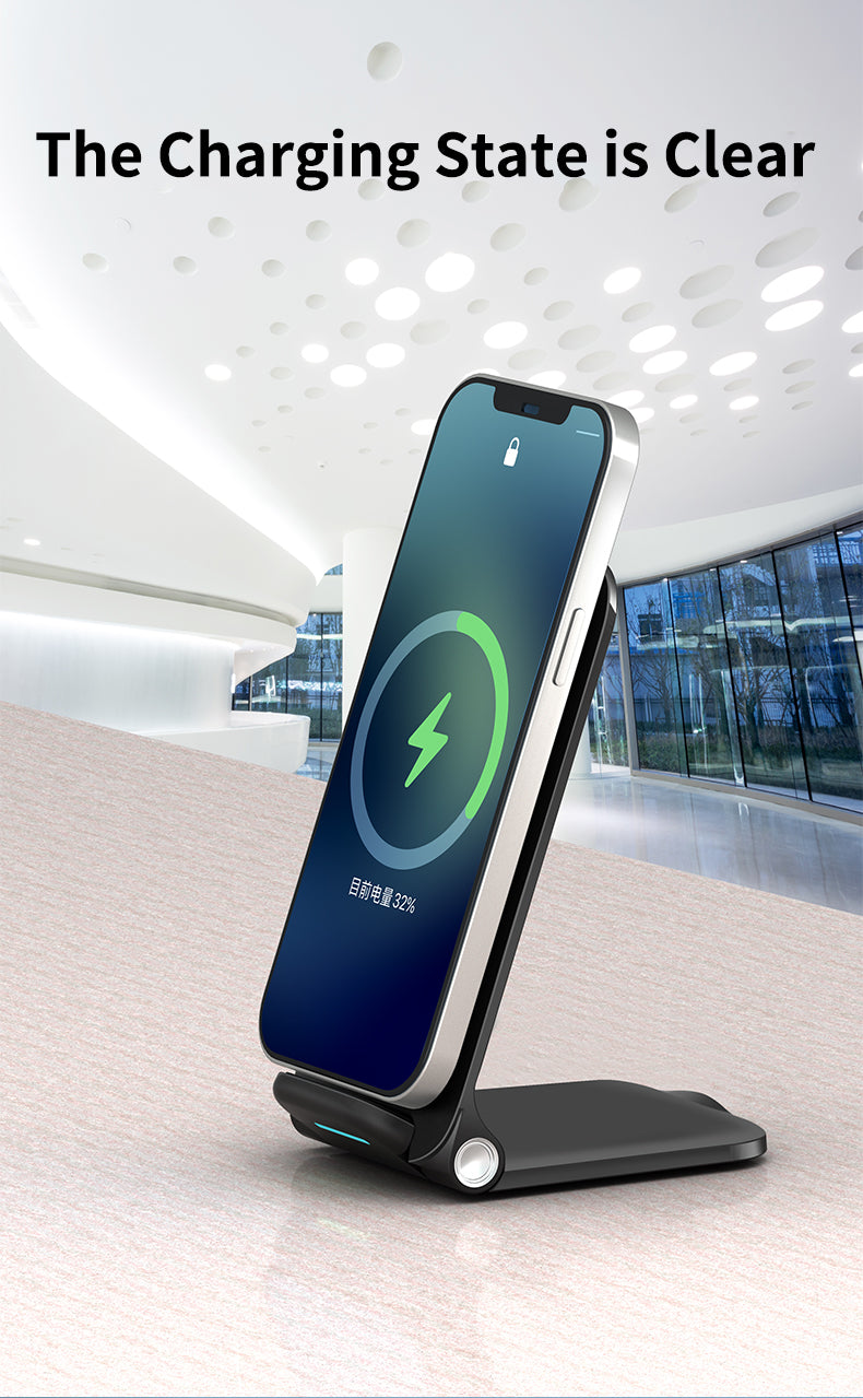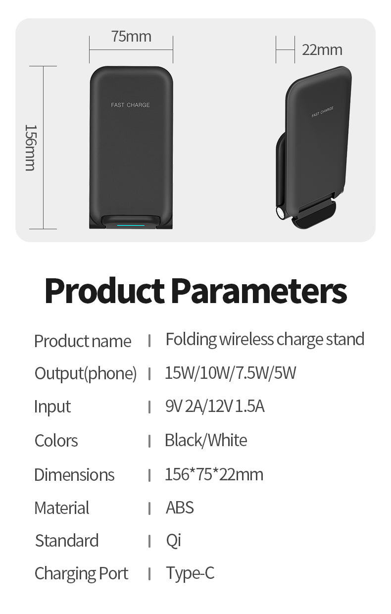 - Foldable wireless charger stand, not only a wireless charger, but also a vertical phone stand. Convenient for your life