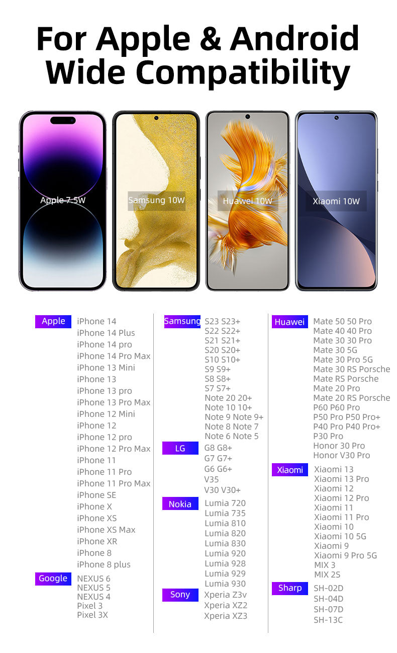 - 15W(Max) fast wireless charging, compatible with 15W/10W/7.5W/5W